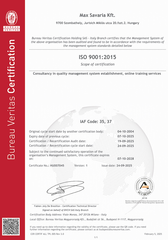 Minőségirányítási rendszerek kiépítése